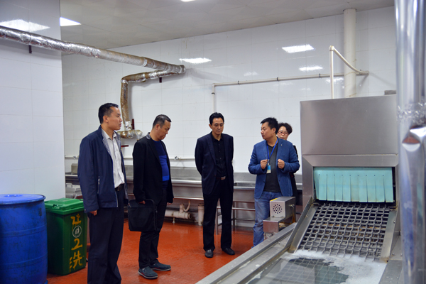 西京学院副校长唐娣芬陪同参观学生餐厅自动洗碗设备