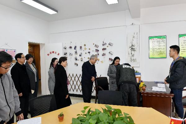 11月28日下午,省委高教工委副书记李智军在校党委副书记熊冬梅陪同下视察学生工作“五进”公寓工程建设情况,学校组织部、学工部、团委、后勤保障处等部门负责人以及各院、系党总支书记、学生科长、团总支书记一起进行了现场学习交流。
