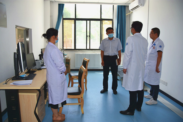 张越林副院长首先来到社区中心门诊大厅,实地调研了急诊科、全科诊室、放射科、医保办、公共卫生科的业务开展情况,切身感受到医院环境与秩序日新月异的变化,对他们的工作表示认可。同时,聆听了一线员工的诉求,慰问职工要注意防暑,以良好的精神面貌服务师生、服务居民,确保校园稳定、社区平安。