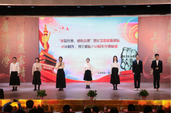 在这个特殊的日子里,同学们通过经典诵读的方式纪念伟人,重温经典,感悟真理,受益良多。不一样的“原理课”带大家走近“有血有肉”的伟大的无产阶级革命领袖们,既达到了实践性教学的目的,丰富了学生们的第二课堂活动,也给予了学生展示自我的平台,更是助力学校培养又红又专、德才兼备、全面发展的中国特色社会主义合格建设者和可靠接班人的有益尝试。(马克思主义学院 文/何梦焕 图/陈浩曦 审核/桑利娥)