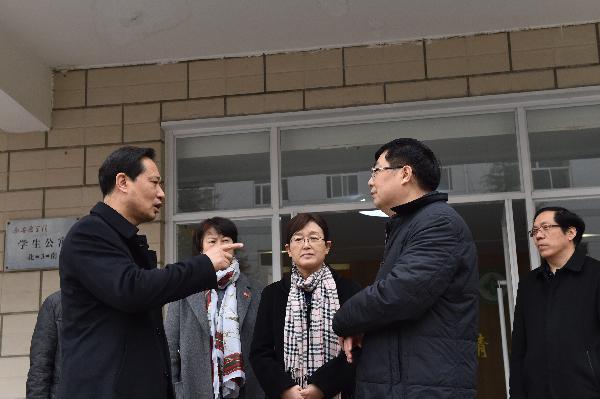 2017年12月29日上午,陕西省委组织部副部长王秉琦一行到我校调研学生党建与思想政治工作,在了解了我校党建与思想政治工作开展情况之后,在校党委书记范兵、党委副书记熊冬梅及组织部、学工部等部门负责人的陪同下,深入学生公寓对我校学生工作“五进公寓”工程开展情况进行了实地调研。 学生工作“五进”公寓工程是2017年学校党委贯彻落实高校思想政治工作会议精神,立足学生公寓深化学生思想政治教育的一项创新工程。通过开展党建进公寓、团建进公寓、辅导员工作进公寓、“易班”建设进公寓、文化建设进公寓,打通了育人最后一公里,形成了大思政的育人格局。经过一年的建设,我校学生工作“五进”公寓工程已初见成效。