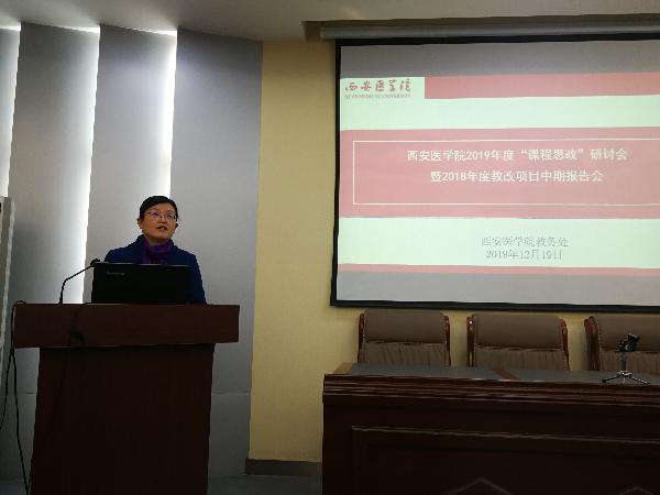 12月19日上午,我校2019年度“课程思政”研讨会暨2018年度教改项目中期报告会在基础部学术报告厅召开,校党委副书记熊冬梅、副院长李雪萍出席本次会议,教务处处长和新盈、副处长张军峰、各学院(部)党、政负责人、“课程思政”项目负责人、授课教师代表参加了本次会议。会议由教务处处长和新盈主持。