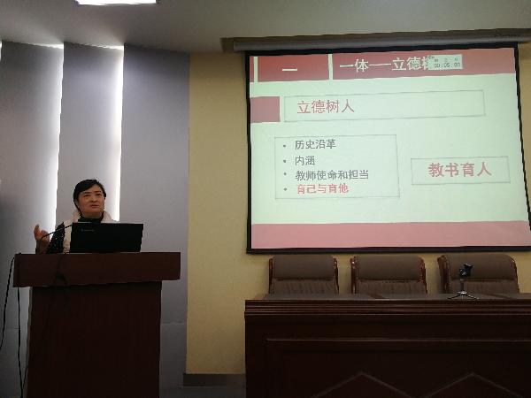 随后,校党委副书记熊冬梅发表讲话,她以“点上开花,三方受益”精辟的总结了我校“课程思政”建设取得的阶段性成果,同时指出在“课程思政”建设中仍存在三个“不”:一是面上不均,即来自学院层面的整体支持和设计力度不够;二是试点改革范围小,数量少,建设总体不均衡;三是“课程思政”建设中仍存在“不知”、“不会”、“不全面”等问题。她强调,在“课程思政”建设中,各部门应做好协调,教务处做好统筹推进。实现党政同责,二级学院(部)应努力抓好教师课堂,在各教研室推动“课程思政”建设研究工作,增强育人意识、提高育人能力、提升育人水平。接着,熊书记就下一步建设工作提出了三点要求,一是反复研读学校“课程思政”实施方案,二是各负其责,统筹协调推进“课程思政”改革。三是处理好试点和全面的关系、育人与育己的关系、思政课与“课程思政”的关系、部分与整体的关系,实现人人参与,各专业教师、思政教师、辅导员等全员共同参与,全过程、全方位推进“课程思政”建设。