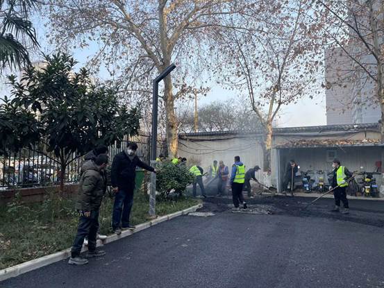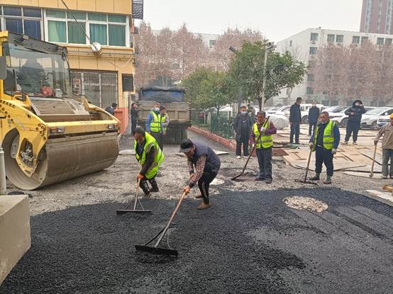 元旦期间,高新校区老旧小区改造施工现场仍然一派繁忙景象,高新校区管理处协同施工方,正加快推进路面沥青铺设、人行道板铺装以及各项配套基础设施施工进度,确保改造项目按期完工。