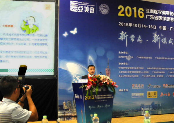 (第一附属医院)10月15日,2016年亚洲医学美容协会学术大会在广州白云国际会议中心隆重召开,我校第一附属医院医学美容科雷惠斌主任应邀参加本次大会并应邀做了关于毛发移植并发症及其临床处理的演讲。