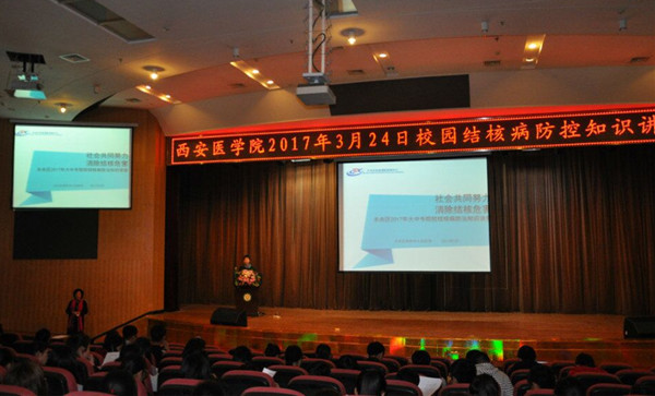 活动还邀请了西安市未央区疾控中心结核病科的李敏科长对全校辅导员老师和400余学生进行了结核病知识的讲座。李敏科长从什么是结核病,肺结核的临床表现,传播途径,肺结核的危害,同学之间怎样防护,及检查、诊治等多方面,深入浅出,声情并茂的讲解了结核病的基本知识,防治措施,她的生动讲座赢得了老师和同学的阵阵掌声。通过讲座提高了师生防控结核病的意识,提升了防控结核病的能力,增强了战胜结核的信心。讲座结束后,现场发放结核病调查问卷500余份,为今后有效的开展防控结核病提供可靠依据。