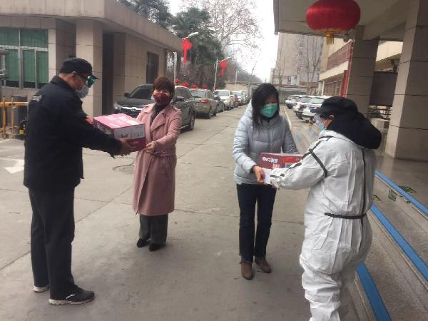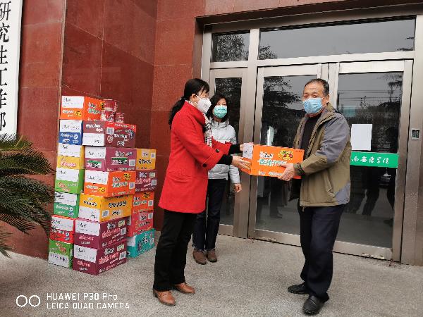 校工会了解到一直坚守在防疫工作岗位上的许多职工,有时连正常吃饭都无法保障,迅速联系了110箱方便面及时送到他们手中,表达了校党委的关心。学校副院长黄保强、校党委副书记熊冬梅,带领工会一行慰问一线疫情防控人员,把校党委、校工会的关心、问候送达坚守岗位的工作人员,并表达了全校职工家属的感谢之意,感谢他们为保校园平安尽职尽责,无私奉献;两位领导深入了解了他们在防疫工作中的职能和工作流程,鼓励他们认真做好本职工作,落实好相关工作规定及任务,为大家服务的同时更要做好自身防护,保重身体。坚守的工作人员纷纷表示,组织的关心和关怀,激励他们更加全身心地投入到抗疫工作中,他们一定认真落实职责,为保障全校师生的健康和安全筑起坚实的防线。