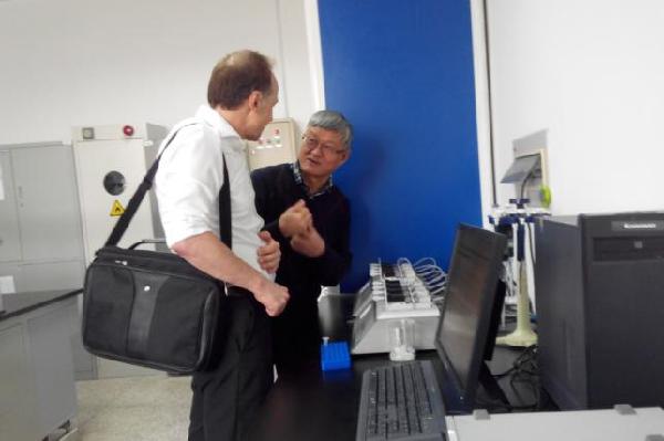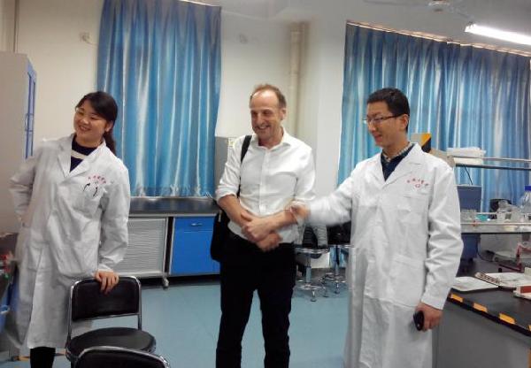1月10日下午,皮特·蒙克博士再次来到我校。在参观了我校基础医学研究所、基础与转化医学研究所后,与徐仓宝所长,赵玉峰博士、曹慧玲博士、王胜昱博士,郭婷主任等进行了座谈。皮特博士对我校实验室建设和研究进展表示出很大的兴趣和关注。双方在友好热切的氛围中进行了深入的交流互动,并就下一步可能开展的合作提出了设想规划。