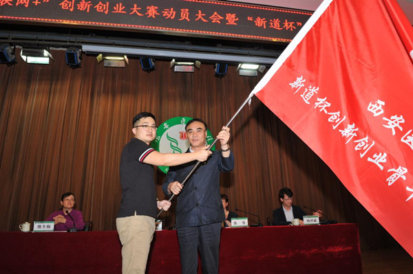 新道公司陕西区副总经理杨祥威在讲话中从大学生创新能力培养、大学生树立创业意识和陕西省“互联网+”创新创业大赛措施几方面讲解了互联网与大学生创新创业的联系。