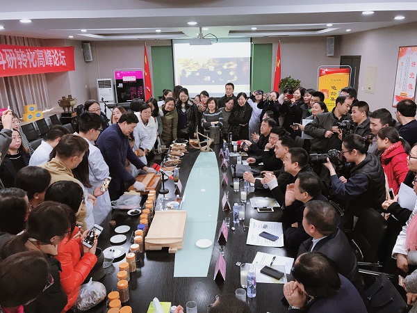 为全面贯彻习近平总书记在科技大会上的讲话精神,启迪创新思维,引领创业热点,更好地服务于教学科研及学生培养,进一步加强校企合作,推动科研成果快速转化,服务大众健康的医药事业。2018年11月19日下午,继leyu·乐鱼(中国)体育官方网站首届科技大会之后,以“创新创业,校企合作、传承中医药文化”为主题的药学院双创校企合作科研转化高峰论坛在药学院会议室和报告厅举行。leyu·乐鱼(中国)体育官方网站副院长黄保强、广誉远国家非遗传承人柳惠武,陕西医药控股集团有限责任公司董事闫占社,陕西药品监督管理局药品化妆品注册管理处侯鸿军处长,陕西省功能食品工程技术研究中心主任刘建书,天士力控股集团董事长助理张剑,陕西盘龙植物药业有限公司总经理曹永霖及广誉远传承人团队出席了大会,药学院全体教师、中药学专业学生等200余人参加了大会。大会由药学院院长秦蓓教授主持。 大会第一项由广誉远国家非遗传承人柳惠武先生现场演示中医古法炮制定坤丹并分享“天人合一、顺时养生”的中医药传统文化。广誉远被誉为中医古法炮制的“活化石”,传统中医药的古法炮制技艺是中华民族历经千年为世人留下的瑰宝,作为国家非物质文化遗产定坤丹制作技艺的传承人,柳惠武先生坚守着“修合虽无人见,存心自有天知”的古训,用心制药,用自己的“匠心精神”传承和弘扬我国传统中医药事业,让中医药健康产业普及到每个家庭。