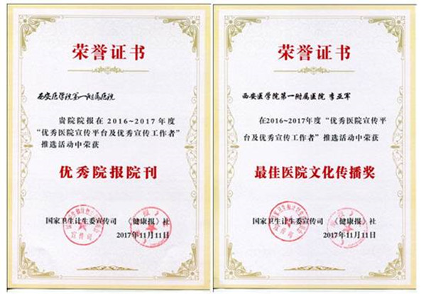一附院近年来高度重视医院文化建设,以文化建设为引领,不断创新形式,丰富医院文化载体,促进医院内涵持续提升,医院综合实力跃升为西北20强。践行宣传工作与人文医院建设相结合的理念,使之发展为医院文化建设的有力武器,促进全院上下形成强效凝聚力与强大战斗力,更有利于树立良好的行业形象,有助于形成医疗改革发展的良好社会环境和舆论氛围,反过来也会促成全院人文素养的升华,加速推进医院品牌塑造。