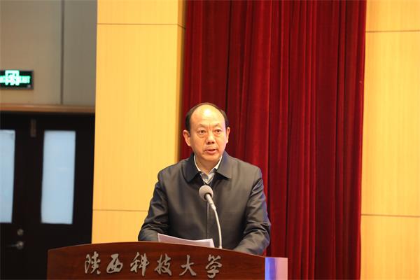 省委教育工委书记董小龙,省委“不忘初心、牢记使命”主题教育第八巡回指导组组长秦向东出席大会并讲话。省委主题教育第八巡回指导组有关人员,省教育厅发展规划处处长王廷栋,陕西科技大学校长马建中、副校长李志健,西安工业大学校长雷亚萍、副书记吴介军、副校长陈桦,我校党委书记范兵、院长杨帆、副院长姚文柱出席大会。三所联盟高校相关职能部门负责人、学院教师和学生代表500余人参加了大会。大会由陕西科技大学党委书记姚书志主持。