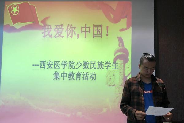 为强化我校少数民族学生爱国主义教育,引导学生树立共产主义理想信念,继承和发扬延安精神,做勇担民族复兴大任的时代新人,按照我校“十一”红色教育系列活动的安排,10月7日下午,在护理学院报告厅,我校少数民族学生“我爱你,中国!”集中教育学习活动如期举行,100余名少数民族师生参加了活动。