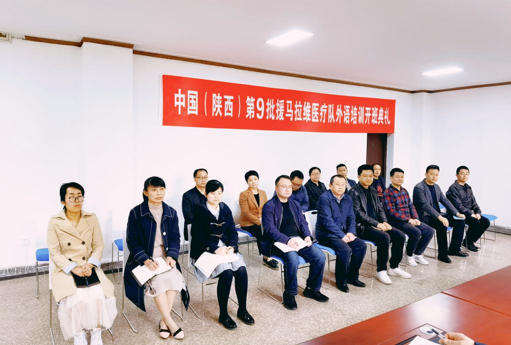 2021年4月14日下午,中国(陕西)第9批援马拉维医疗队外语培训开班典礼在陕西省医学外语培训中心举行。陕西省卫生健康人才外事中心主任王康利,陕西省卫健委办公室(对外交流合作处)督察专员王辉,省卫生计生人才服务与外事交流中心党伟博科长,我校外国语学院总支书记尚瑜、副院长薛英利,第9批援马拉维医疗队全体学员参加了开班典礼。开班典礼由省卫生健康委办公室(对外交流合作处)三级调研员肖辉主持。