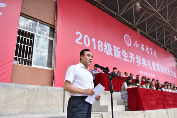 开学典礼上,由临床医学专业1622班罗闻达同学带领2018级新生进行了《医学生誓言》宣誓。这也是我校探索加强思政教育和医德教育相融合的有效形式。教师代表沙保勇博士、在校生代表樊帆同学、新生代表吕梁同学、教官薛涛中尉分别发言。