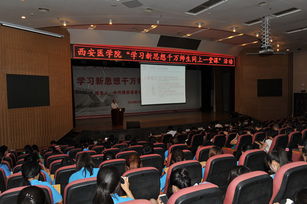 董小龙书记带领我校师生重温了习近平总书记在北京大学师生座谈会上对广大青年提出的四点期望,即“一要爱国,忠于祖国,忠于人民;二要励志,立鸿鹄志,做奋斗者;三要求真,求真学问,练真本领;四要力行,知行合一,做实干家”,他寄语我校广大师生,要爱岗敬业,履职尽责;要刻苦学习,奋发图强,为实现健康中国战略,为服务陕西基层百姓而不懈努力!