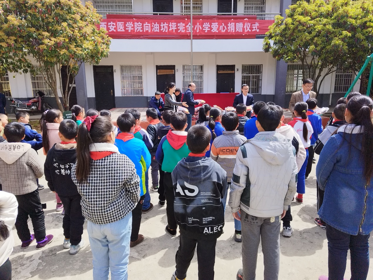 当天,在油房坪村小学,姚文柱代表学校向同学们发放了学校捐赠的70余套校服,圆了同学们的校服梦;学校第二附属医院10余名专家在油房坪村,开展“服务百姓 健康行动”送医送药活动,为70余名村民进行健康查体、超声、心电图检查和诊疗咨询服务,并向油房坪村卫生室捐赠了价值3000余元的村民常见病用药。