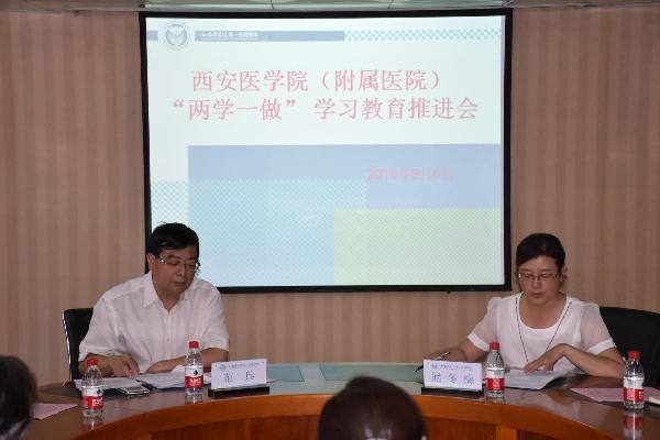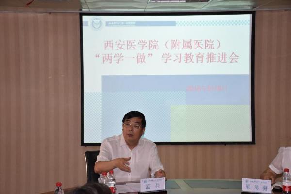 听取各附属医院发言后,党委书记范兵充分肯定了各附属医院党委、党支部在前一阶段“两学一做”中取得的成绩。第一附属医院“围绕中心,服务大局”展开“两学一做”学习教育工作,党员干部在社区举办“健康大讲堂”,开展做“暖医”、“暖护”医师节微视频大赛等活动,医院上下团结一心,顺利通过了国家三级甲等医院评审;第二附属医院围绕创三甲,在学习教育中不断强化医德医风、志愿医疗服务,和西安市儿童福利院开展“大手拉小手,健康一起走”等活动收效良好;附属宝鸡医院以搬入新门诊大楼为契机,采取举办“讲党性、守规矩、做表率”主题演讲比赛、组织医护人员参加无偿献血、定期前往渭滨中心敬老院开展义诊服务等措施,凝聚力量,提升医院整体医疗服务水平。附属汉江医院在“两学一做”中,充分运用属地组织部门“天汉先锋”平台,加强学习,以“二甲”复审为抓手,完善院规院纪,加快医院建设。
