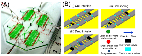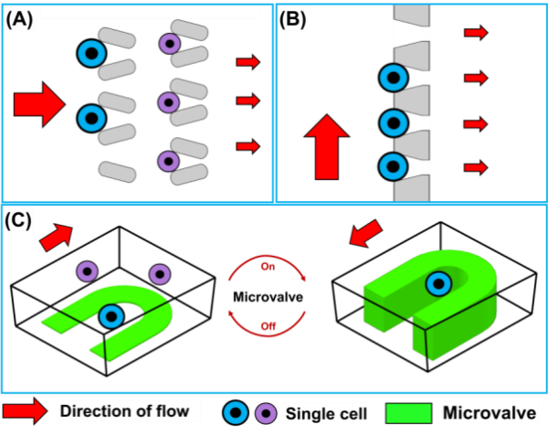 微流控芯片技术,是一种微流体界面精确操作技术。微流控芯片的特点在于,它可以实现常规实验室诸多基本功能的微型化和集成化。目前利用微流控芯片技术可以进行生物学基础研究和临床检验,特别是在微型化组织培养,人体器官模拟,细胞分选和单细胞操作。在单细胞操控方面,基于微流控芯片分离方法进行细胞分离逐渐成为了研究热点。