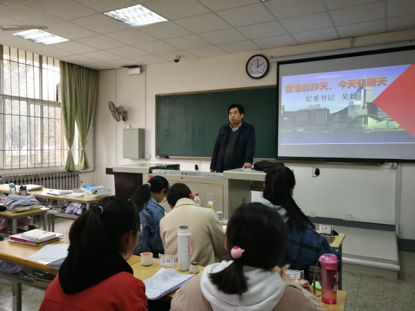 校纪委书记吴毅以“香港的昨天、今天和明天”为题,从香港的离与归、香港爆发骚乱的起因与经过、香港问题的深层原因及本质和香港的明天四个方面,结合最新时政情况,对香港问题进行了深入解读。整堂课气氛热烈,掌声不断。同学们表示,与校领导的近距离接触,既感受到了亲和力,又领略到了丰富的人生阅历与深厚的学识素养。