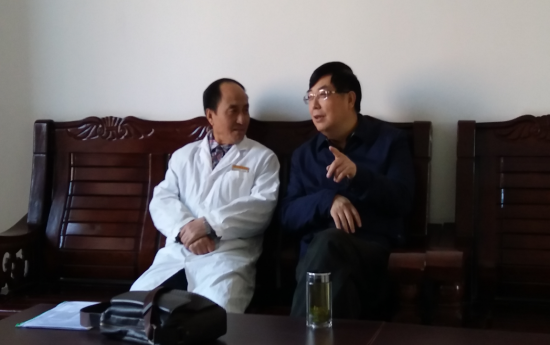 党委书记范兵与杨石照教授交流