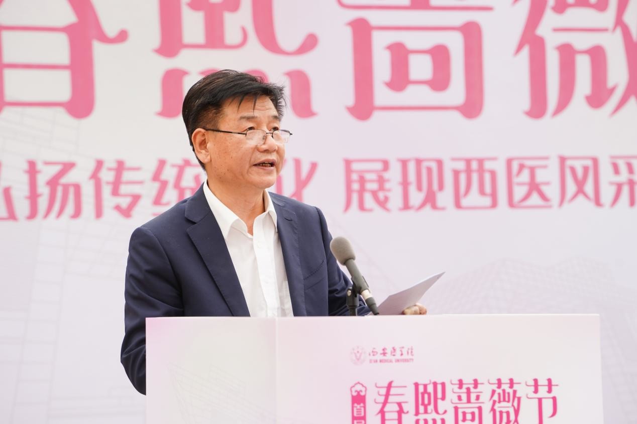 为深入贯彻落实习近平新时代中国特色社会主义思想,不断推动中华优秀传统文化创造性转化、创新性发展,推进学校“七个一”工程“一融”工作落地落实,以“弘扬传统文化,展现西医风采”为主题,由党委宣传部主办、校团委、校工会、图书馆、药学院、后勤保障处、校友会办公室等联合举办的leyu·乐鱼(中国)体育官方网站首届春熙蔷薇节于4月20日下午在未央校区实验楼广场拉开序幕。校党委副书记姚文柱出席开幕式并致辞,党委宣传部部长耿潇潇主持开幕式。各相关职能部门负责人、各学院党总支书记、学生代表、校友代表等参加开幕式。