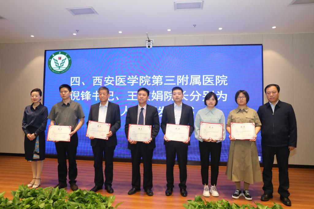 巩守平介绍了参会嘉宾,人才引进背景、目的和意义,并宣读胡开进教授的任职文件。杨帆代表学校与胡开进教授签约,并为王宝彦、孙辉教授颁发特聘教授证书。三附院党委书记倪锋、院长王敏娟为医院引进人才苗武胜、卫凌、李芝香、吴中明、李春梅、郭发刚等医生颁发聘书。