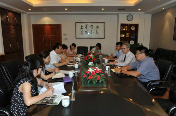 (国际办)7月4日下午,院长杨帆在行政楼会议室会见了美国哈町大学教育学院院长雷蒙德·威尔登一行三人,双方就开展联合培养项目展开交流探讨。李雪萍副院长、国际交流与合作办公室主任郭婷、英语系主任陈蓁等参加了会议。会议由李雪萍副院长主持。