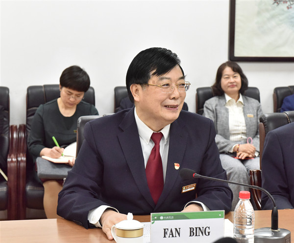 我校党委书记范兵在致辞中对鲍德尔总书记一行的到来表示欢迎,他在讲话中对我校的办学历史和发展现状进行了介绍,范兵书记说,我校与尼泊尔共产党之间的友谊和感情源远流长,早在2013年时任尼泊尔共产党高级领导人奥利就访问过我校;2015和2016年,我校又相继迎来了时任尼泊尔副总统贾阿和尼泊尔总理奥利的到访,这些都是中尼两国友谊发展的见证;