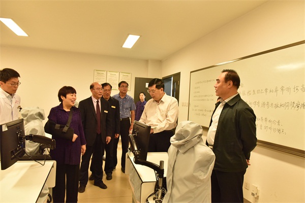 校领导在临床医学院实验室检查