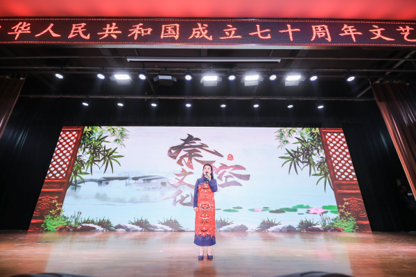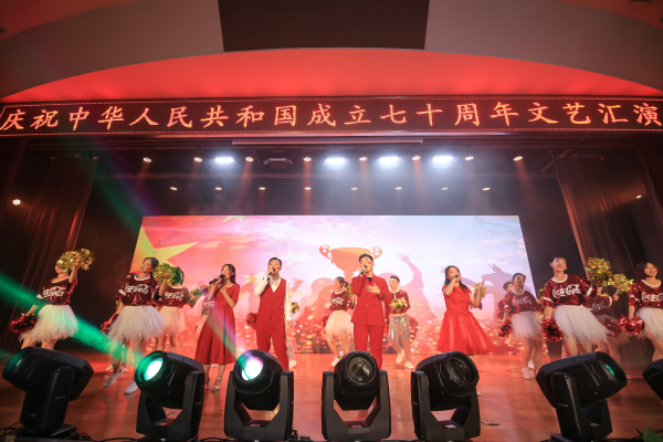 相遇相知,风雨同舟,追梦之路,携手共进,一曲华美的歌伴舞《追梦之路》,将晚会现场推向高潮。情景剧《爱的奉献》,歌曲《筑梦中国》《爱我中华》,舞蹈《歌颂祖国》《可爱的中国》《再唱山歌给党听》无不体现着“两个一百年”奋斗目标和中华民族的伟大复兴梦,拳拳爱国之心,溢于言表。歌曲《阳光路上》《半个月亮爬上来》《新的天地》《今夜无眠》,一首首激情迸发的歌曲,为新中国成立七十周年的发展历程做了完美诠释,相信在新时代我们的祖国会继往开来,再创辉煌。为中国人民谋幸福,为中华民族谋复兴,是党的心声,战胜一切艰难险阻跟党走是人民的心声,国家强盛,民族团结,是我们的心声。舞蹈《心声》将藏族同胞们敬天惜地,热爱家乡,热爱祖国的情怀演绎的淋漓尽致。红嫂,沂蒙之魂,大爱无疆,“沂蒙红嫂”是一个伟大的母性群体,情景音乐剧《沂蒙颂》给师生们演绎了沂蒙红嫂的故事,展现了一段血乳交融的军民鱼水情。一曲气势磅礴的歌舞《阳光路上》引燃全场,由机关一分会带来的朗诵,饱含深情,热情奔放。合唱《我爱你中国》,唱出了祖国五千年的华夏文明、悠久历史、地大物博、物产富饶,让我们坚信祖国一定有个可赞美的光明前途,到处都是活跃的创造,到处都是日新月异的进步。