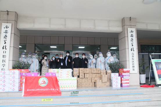 高新校区管理处副处长王军代表学校接收了捐赠物资,并向陕西省慈善联合会志愿者工作委员会、雁塔区法院执行局及第六党支部、陕西嘉帆建设工程有限公司表示感谢。王军表示:“疫情无情人间有爱!面对疫情,社会各界尽显担当和作为,在以陕西嘉帆建设工程有限公司为代表的爱心企业的大力支持和社会各界的关爱下,西医一定能打赢这场疫情防控攻坚战。西安加油,西医加油!”