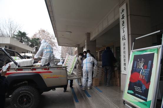 正值抗击疫情防控的关键时期,西安市雁塔区法院执行局的全体干警下沉至我校开展疫情防控工作。工作中,雁塔区法院执行局副局长、第六党支部书记叱红梅了解到我校高新校区面临的实际困难和物资需求,随即多方联系物资以解学校燃眉之急。经过不懈的努力,1月6日下午,陕西省慈善联合会志愿者工作委员会联合陕西嘉帆建设工程有限公司向高新校区全体师生免费捐赠一批紧缺生活物资。