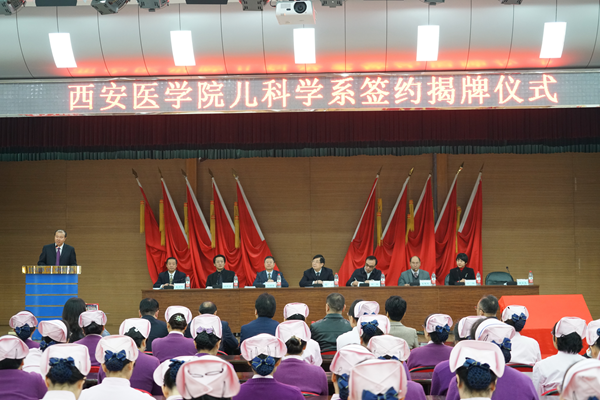 11月9日上午,我校在西安市儿童医院成立儿科学系并举行签约暨揭牌仪式。出席仪式的主要领导有校党委书记范兵、院长杨帆,西安市卫计委主任兼党委书记刘顺智、科教处处长蒋群喜,西安市儿童医院院长李安茂、院党委书记王力平。