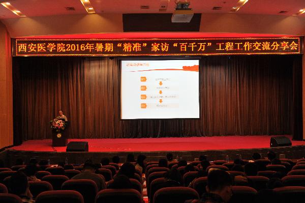 (学工部)9月20日,我校在学术报告厅组织召开了2016年暑期“精准”家访“百千万”工程工作交流分享会,校党委副书记熊冬梅出席会议并作重要讲话。学工部全体工作人员、各院(系)党总支书记、学生科长、团总支书记、全体辅导员及学生代表参加了会议。会议由学工部副部长、校团委书记王燕主持。