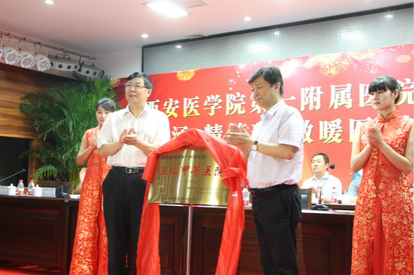 党委书记范兵、陕西省卫计委医政医管局局长安海燕为一附院“三级甲等医院”揭牌