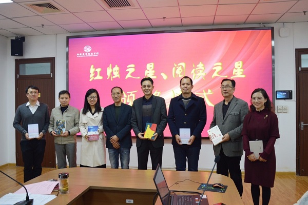 接下来,由工会副主席白万晓和学工部部长靳红樱分别为教工“红烛之星”获奖代表、 学生“阅读之星”获奖代表颁奖。