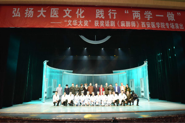 (宣传部)11月25日下午,我校邀请西安市话剧院在西航科教文化中心剧场为我校师生专场演出大型话剧《麻醉师》。该剧以已故第四军医大学西京医院麻醉科副主任、主任医师、教授陈绍洋为原型进行创作,全剧以朴实无华的情节内容、真挚激荡的情感情愫,综合运用音乐、灯光等舞台艺术手段,演绎出陈绍洋始终把拯救患者的生命视为己任,忘我工作,勇攀医学高峰的崇高医德、人格力量与精神境界。