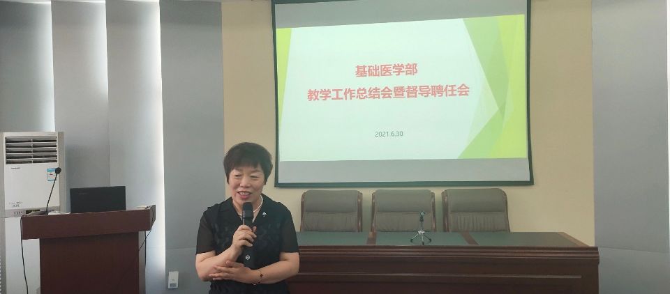 最后,李雪萍副校长对今天召开的会议进行了总结讲话。她对基础医学部第一届教学督导的工作给予了充分肯定,感谢各位督导的辛勤付出。同时祝贺第二届部教学督导上岗,希望新一届督导能加强学习,创新工作方式,为基础医学部的各项教学工作继续做好督导;李雪萍副校长还结合我校实际对基础医学部的教学工作指出了方向,提出了更高要求。