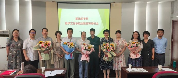 首先,基础医学部党政领导班子为部第二届教学督导组成员姜凤良教授、景晓红教授、成凡副教授、郑慧媛副教授和闫爱丽副教授举行聘任仪式并颁发聘任证书。同时,对第一届部教学督导罗秀成教授、杨石照教授、张润岐教授、王兰教授、肖丹秦教授长期以来出色而卓有成效的督导工作表示衷心地感谢。