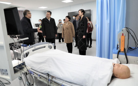 专家组现场考察和切身体验了我校护理示教平台、护理实训室、人体科学馆全景数字化展示系统。