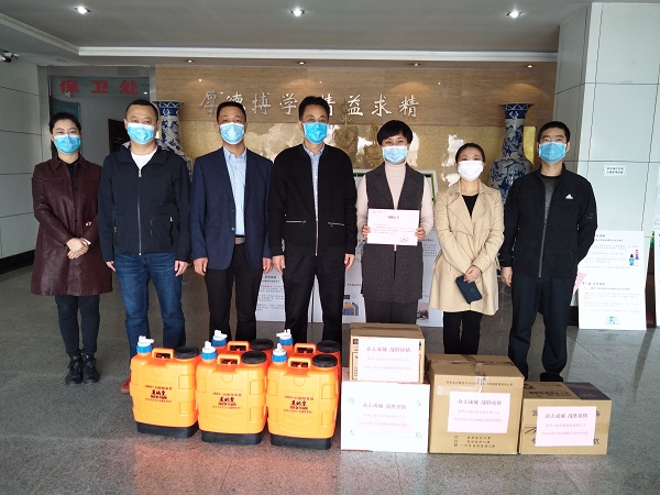 4月7日上午,正值疫情防控进入攻坚阶段、学校行政人员返校之际,我校药学专业2002级优秀创业学子、陕西云能仪器设备有限公司销售经理娄莎一行3人向学校捐赠医用口罩1500个、消毒液1箱、速干皮肤消毒液1箱、乳胶手套10盒及消毒喷雾器6个等防疫物资,支持母校新冠疫情防控工作。捐赠仪式在未央校区举行,副院长黄保强及校企双方代表出席了捐赠仪式。
