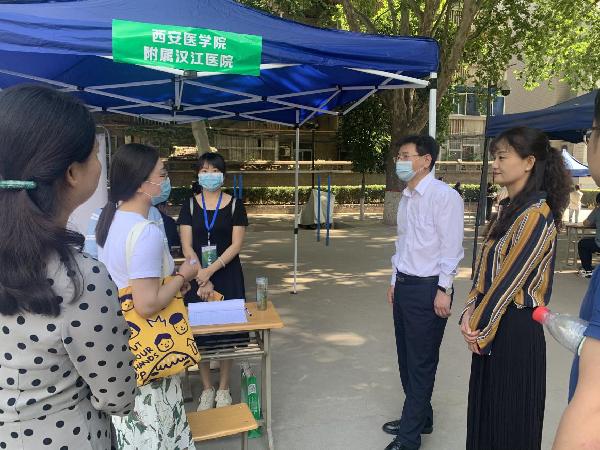为有效应对新冠疫情造成的不利影响,认真贯彻落实省委省政府及省委教育工委关于稳就业促就业决策部署,我校近期出台了促就业“十三条”措施,其中措施之一就是高频次举办小规模线上线下招聘会。5月29日,由省教育厅主办,我校承办的2020届毕业生春季医药卫生类第二场线下招聘会在含光校区举行。副院长姚文柱深入招聘会现场指导工作。