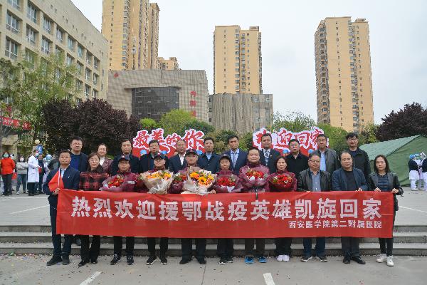 欢迎回家!4月2日至3日,我校第一、第二、第三附属医院和附属宝鸡医院举行隆重仪式,热烈迎接16名赴鄂抗疫英雄平安凯旋归来。
