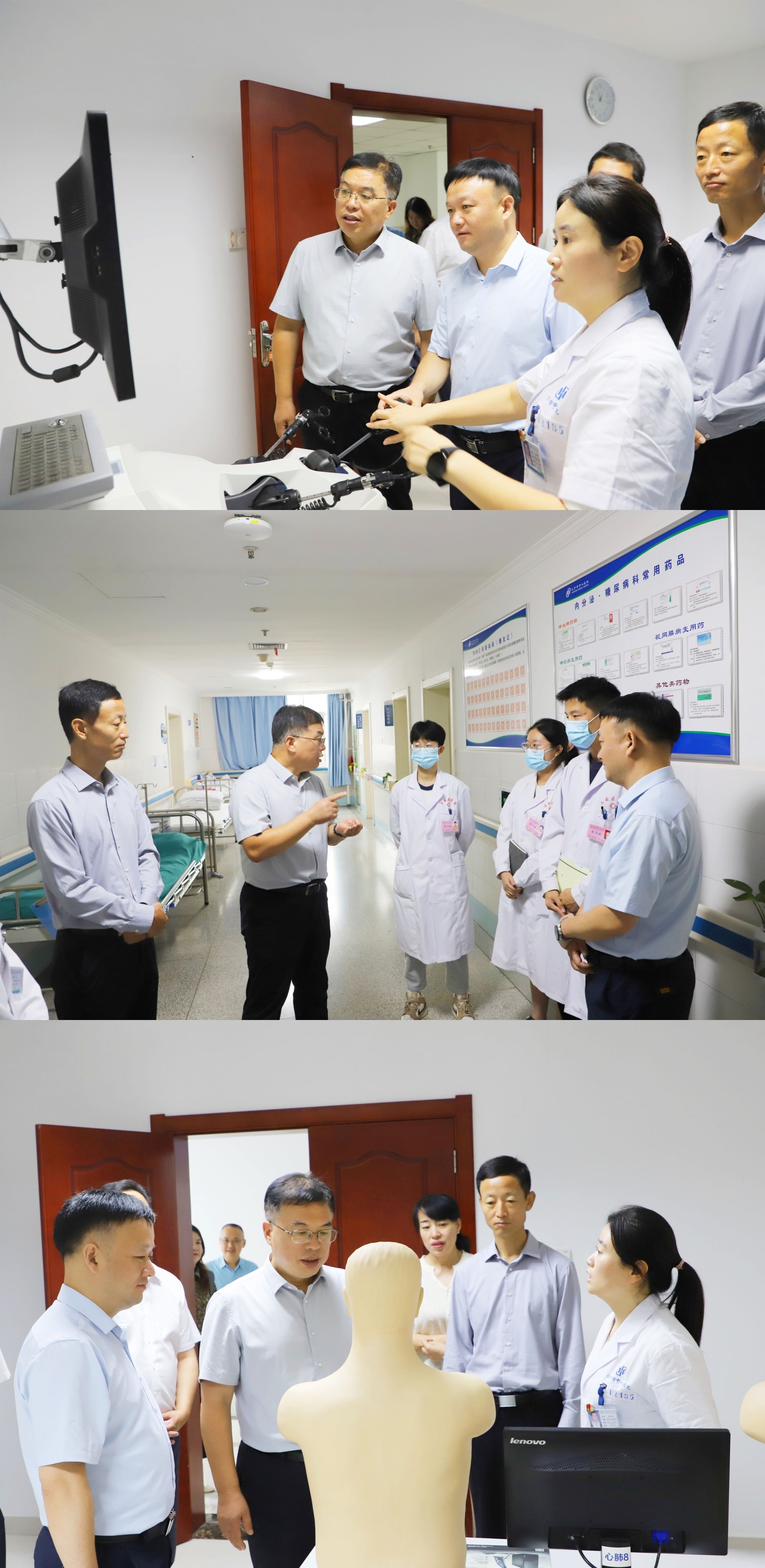 揭牌仪式后,巩守平一行实地观摩了医院内分泌科临床小讲课,现场与我校实习学生深入交流,并参观医院临床技能培训中心,检查学生宿舍、授课教室等教学场地。
