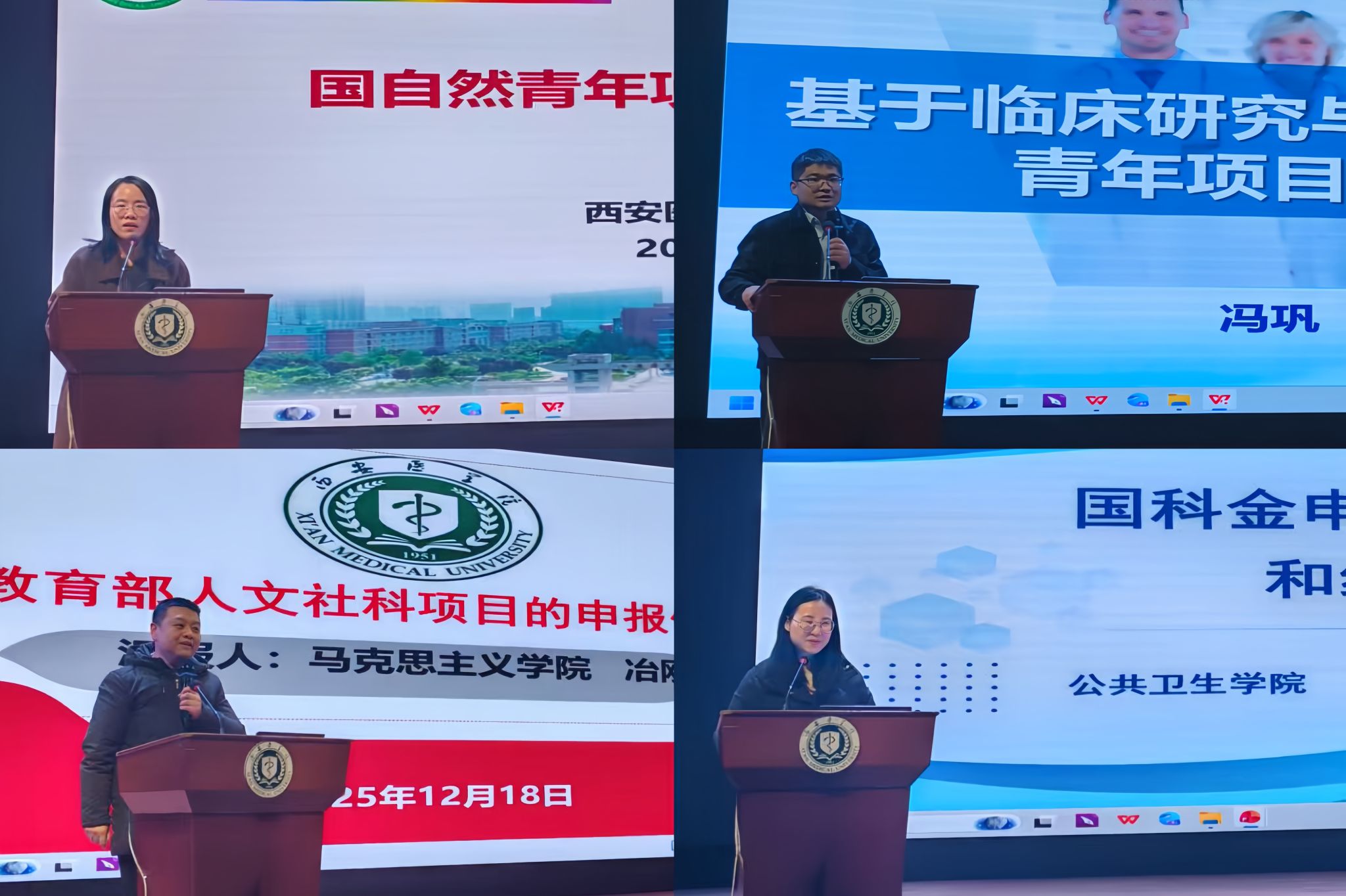 公共卫生学院院长门可分享了二级单位申报组织工作经验,为二级单位统筹推进申报工作提供了借鉴。我校7位科研人员围绕青年基金申请心得、青基到面上的科研成长、教育部人文社科项目申报等主题,结合自身实践从不同角度、不同类别交流分享了课题申请的宝贵经验,内容务实、精彩纷呈,为在场科研人员提供了有益启发和思想交流。